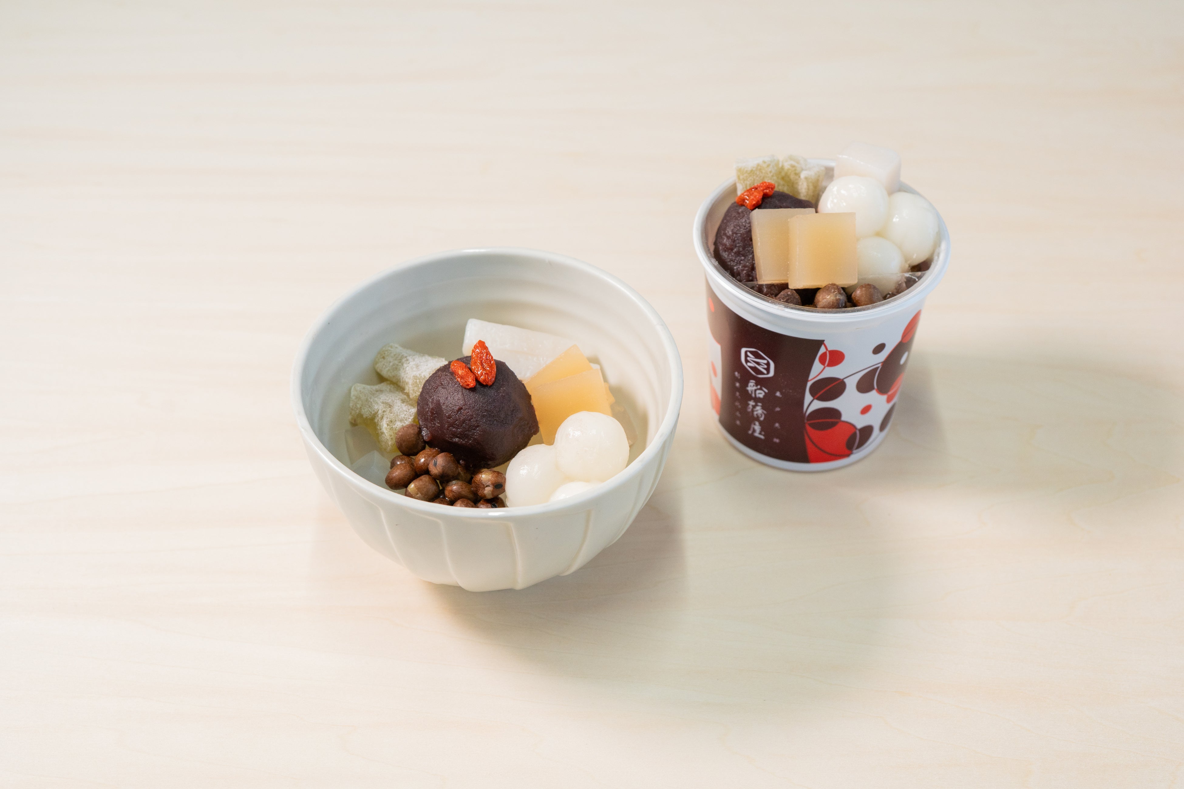 船橋屋自慢のこし餡とくず餅の楽しめる定番あんみつです。