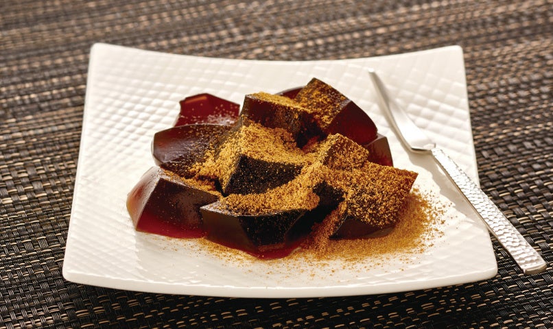沖縄県黒糖入り黒蜜を加えたわらび餅に香ばしい黒きなこ粉を合わせました。奥深く風味豊かな味わいと「もっちり ぷるり」の食感をお愉しみください。