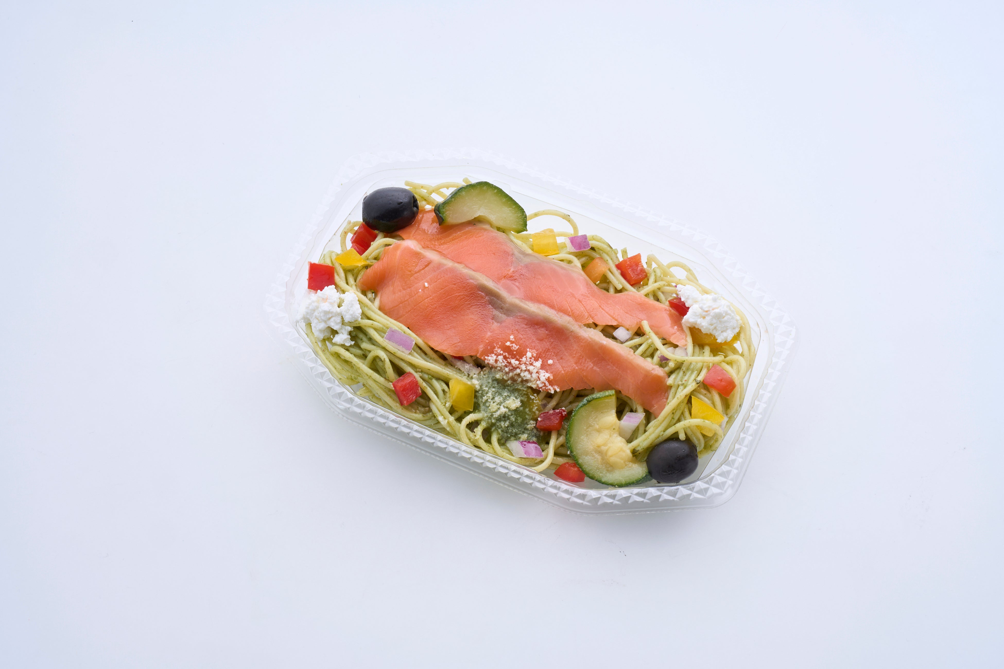 ふわっと香るバジルのパスタに程よい塩味のスモークサーモンをトッピングし、彩りよく仕立てた冷製パスタです。