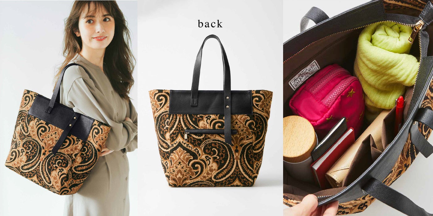 なじんで華やぐペイズリーの存在感。使いやすさも主役級の大人トート