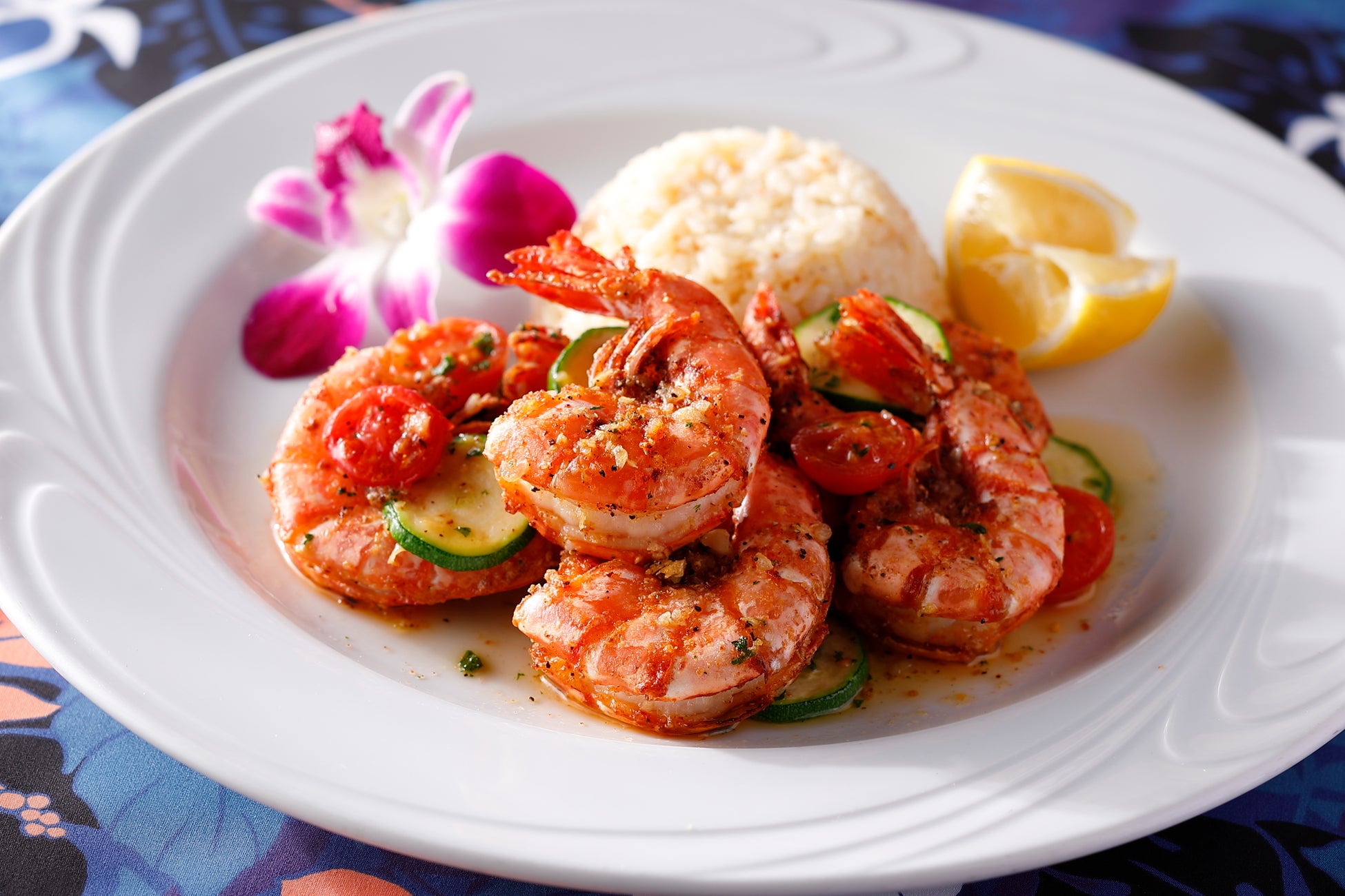 大ぶりの海老を食欲そそるガーリックバターで炒めた「マウイシュリンプ」。食べ応えのあるぷりぷりの食感が魅力の海老にズッキーニやミニトマトなど旬の野菜が彩りを添えます。