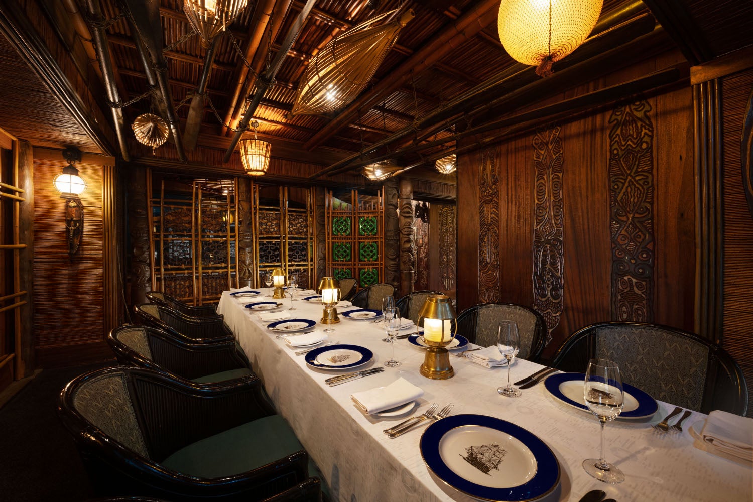 "島の暮らしを取り入れた集い場をつくりたい"、そんな創業者ヴィクター・バージェロンの想いから1937年にサンフランシスコで開業したアイランドリゾートダイニング「TRADER VIC'S」は、南国の楽園を思わせる内装と、西洋と東洋の美食を掛け合わせる「フュージョン料理」の先駆けとなる個性豊かな料理を提供し、いまや世界中の大都市に店を構える、まさにインターナショナルなレストラン。なかでも1974年に誕生し、来年で50周年を迎える東京店は現在最も歴史のある店舗として、パプアニューギニアやタヒチから運ばれた本物の民芸品と、国境に捉われない自由な発想が躍る"世界の味"がお客さまをお迎えいたします。