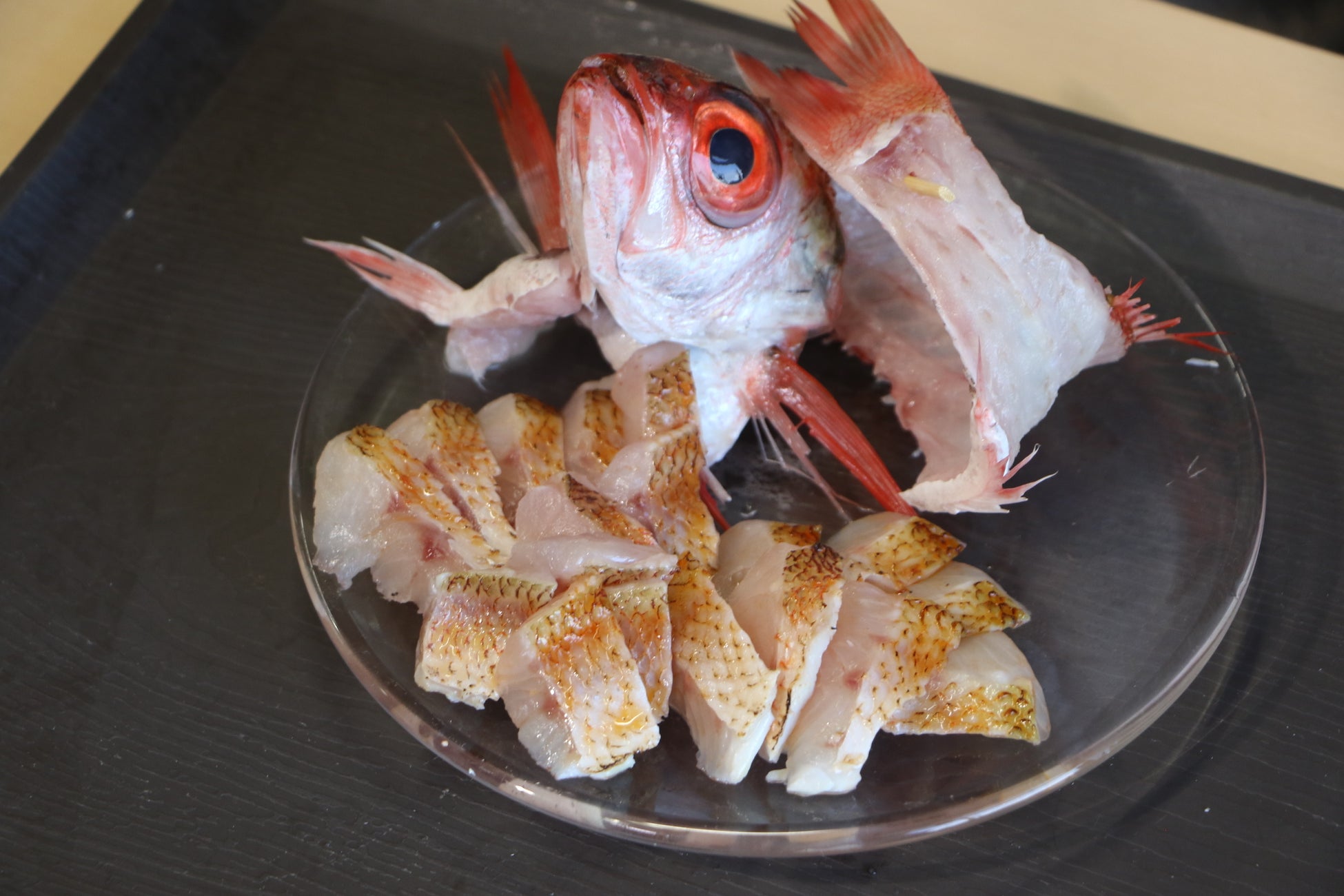 石川といえば、のどぐろも忘れてはいけません。【上島商店】で購入し、イートインコーナーでいただきます。皮目をあぶったのどぐろに、清水は「のどぐろってこんなに美味しかったっけ?!」とこれまたびっくり。