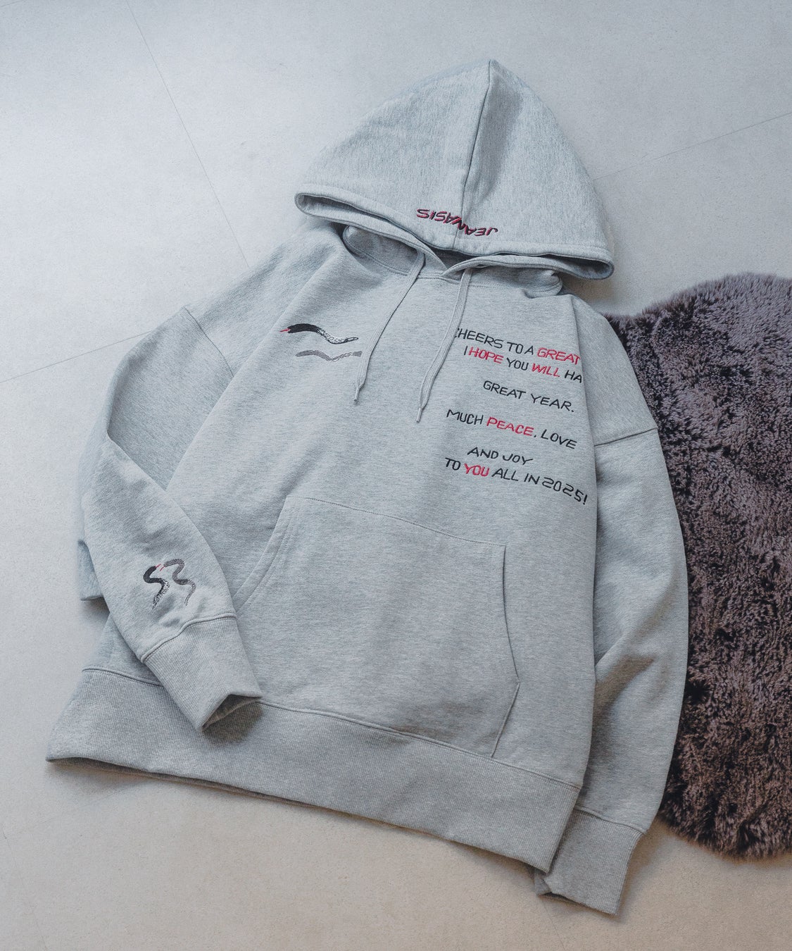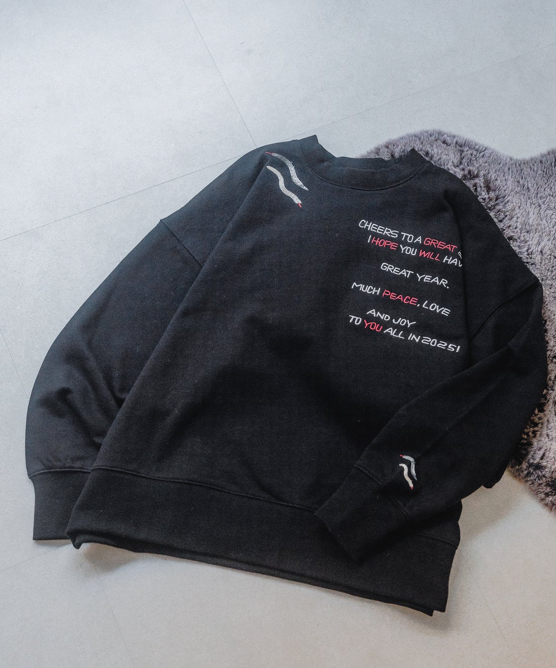 コラボレーションのテーマは「新年への期待感」です。LEE IZUMIDAさんがJEANASISのために描き下ろした2025年の干支「巳(へび)」をJEANASISらしくデザインに落とし込みました。「2025年も、皆さまにたくさんの平和、愛、喜びが訪れて欲しい」というLEE IZUMIDAさんとJEANASISからのメッセージが込められたアートワークを胸元に刺繍した商品です。新しい季節を彩る、新年最初の一着として取り入れたいスペシャルなアイテムとともに2025年もファッションをお楽しみください。