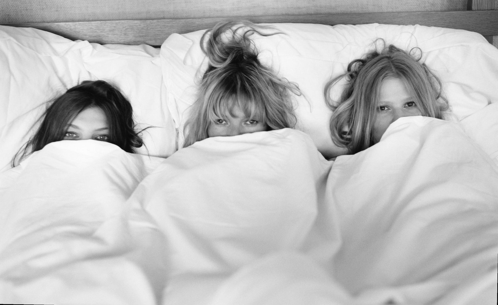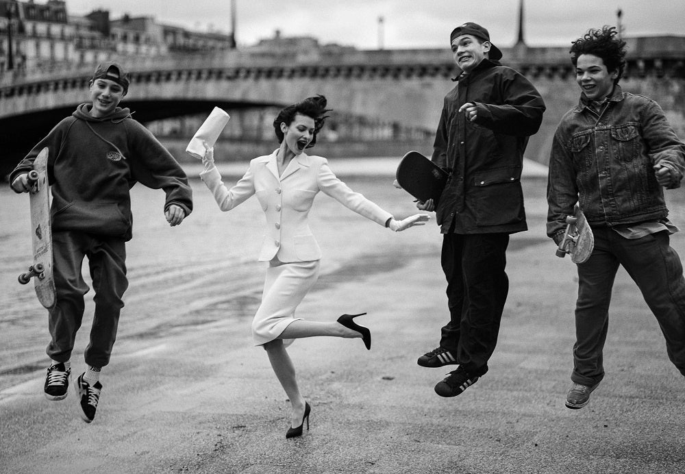 Shalom Harlow with pals on the Seine, Paris, France 1995