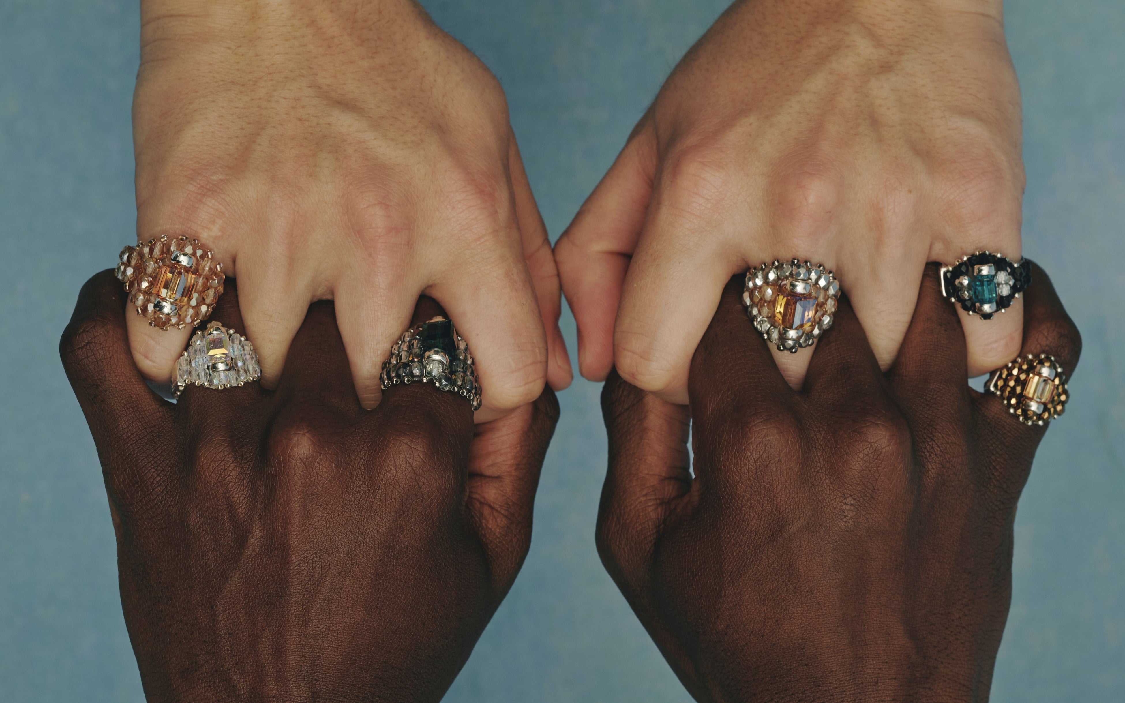デザインの起点となっているのは、2000年に出会ったフランス製のクリスタルビーズリング。