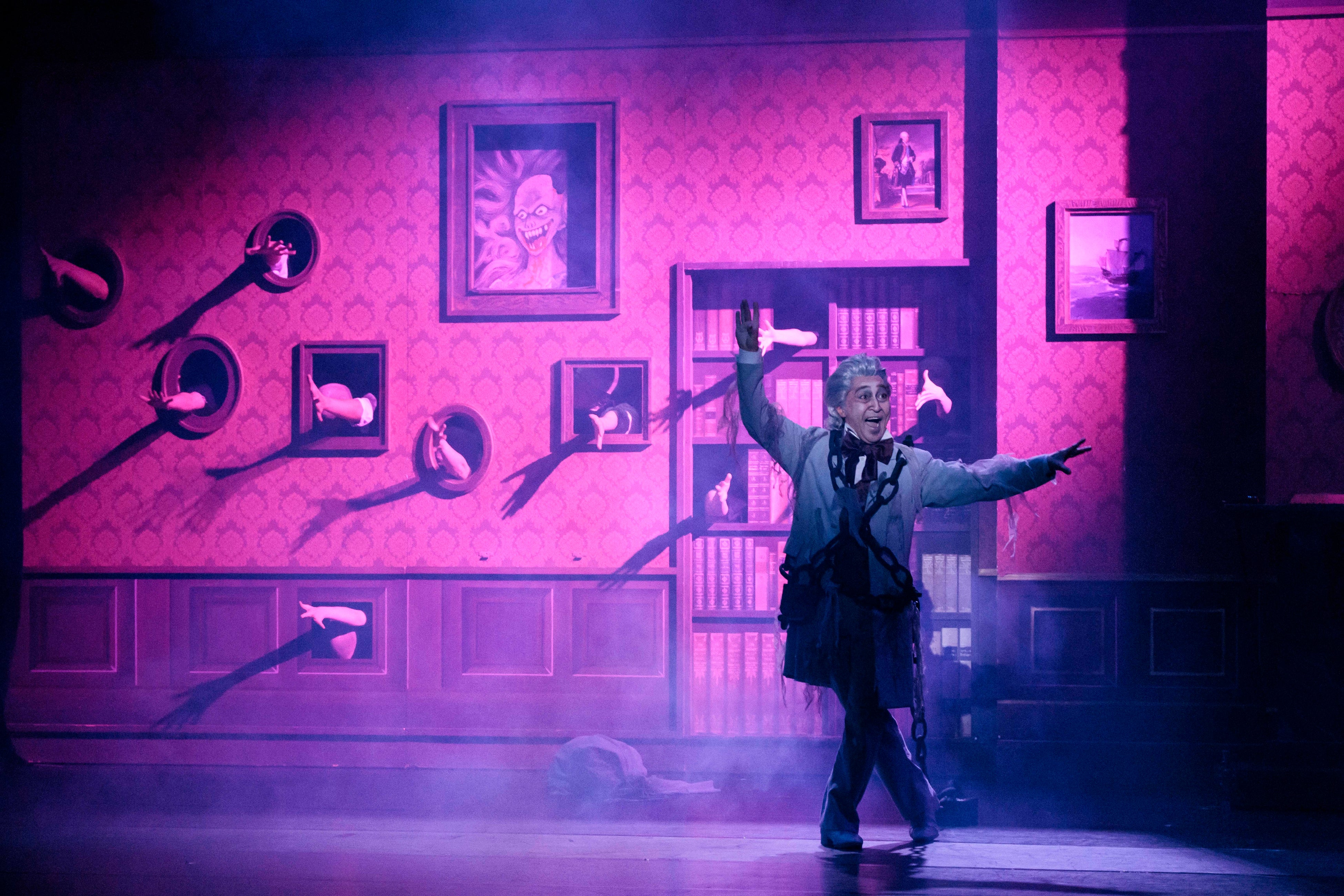 すると突然、7年前に亡くなった共同経営者であったマーレイ(吉田要士)の亡霊が現れた。マーレイは「欲に取り憑かれた人間は死後の世界で悲惨な運命を辿るぞ」と言う。恐れおののくスクルージに、マーレイは最後のチャンスとして、自分の行いを客観的に見る為に、時間旅行へ行こうと提案する。