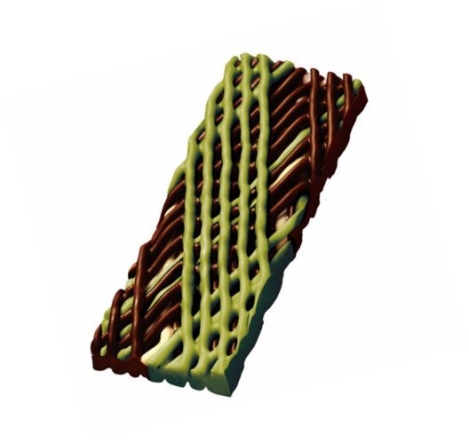 ・約1.5mmの細い線を総数約1350本まで重ねた大きな布のようなチョコレートを、食べやすいサイズに丁寧に切り分けて仕上げています。