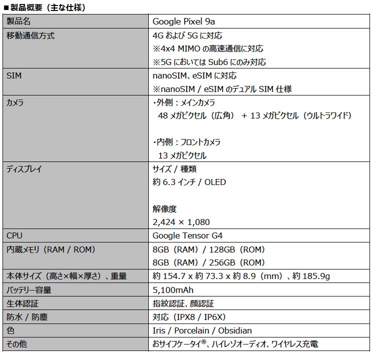 楽天モバイル、「Google Pixel」シリーズの取り扱いを開始し、最新機種「Google Pixel 9a」を7月1日(火)より発売開始