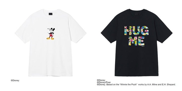 【三越伊勢丹限定販売】ディズニー100周年限定デザイン Tシャツ (左:PLATINUM MICKEY TEE、 右:HUG ME TEE) 各5,500円(綿100%/S、M、L、XL)