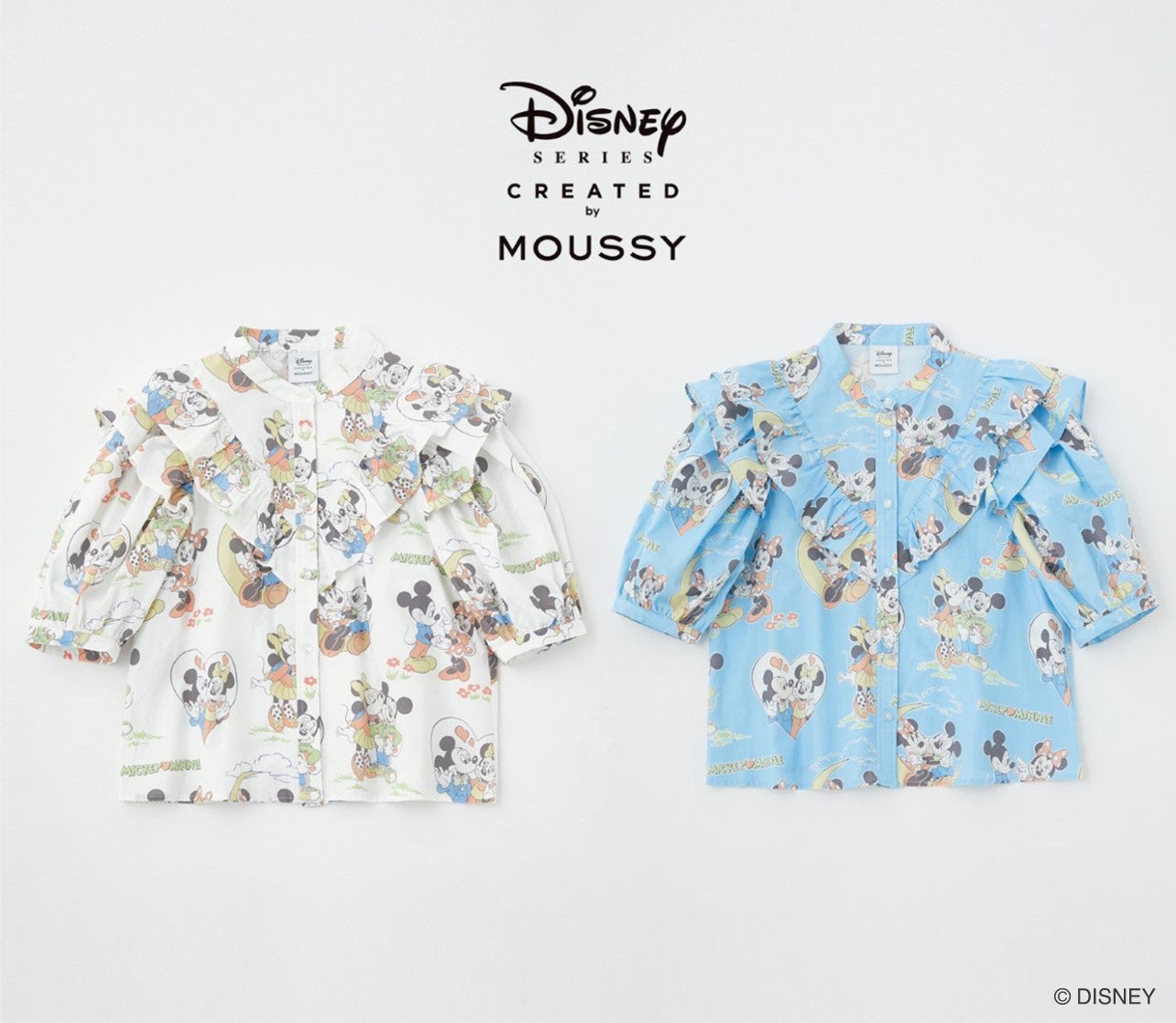 【銀座三越先行販売】<Disney SERIES CREATED by MOUSSY>RUFFLE BLOUSE / MICKEY 各10,450円 (綿100%/フ リーサイズ)