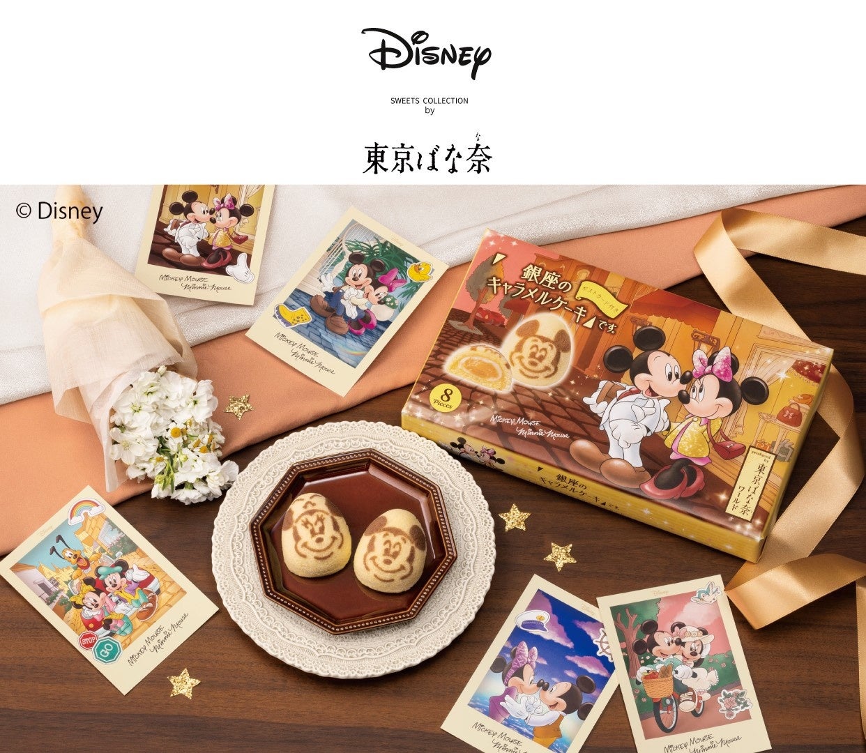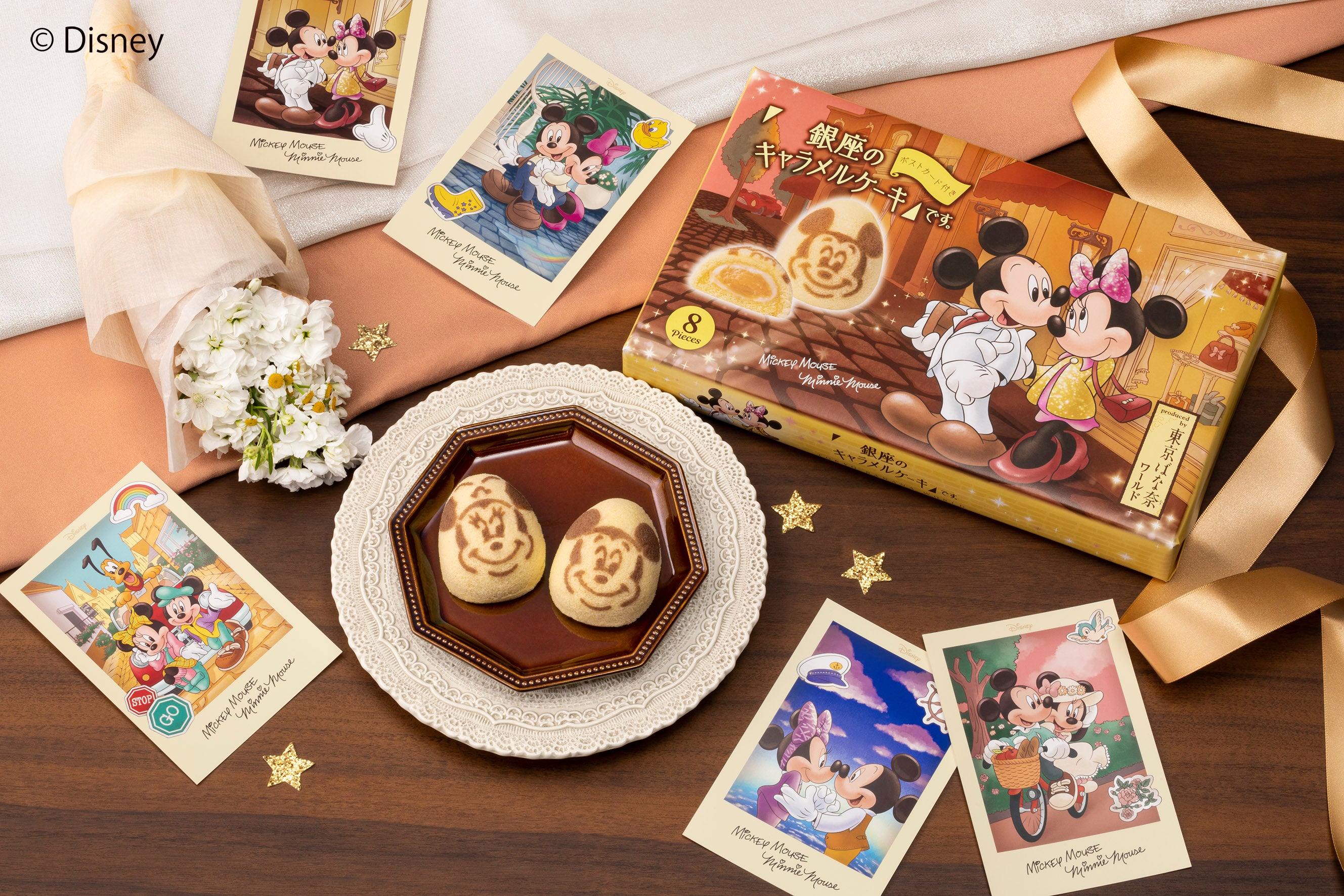 <Disney SWEETS COLLECTION by 東京ばな奈>ミッキーマウス&ミニーマウス/「銀座のキャラメルケーキ」です。1,360円 (8個入/ポストカード1枚)