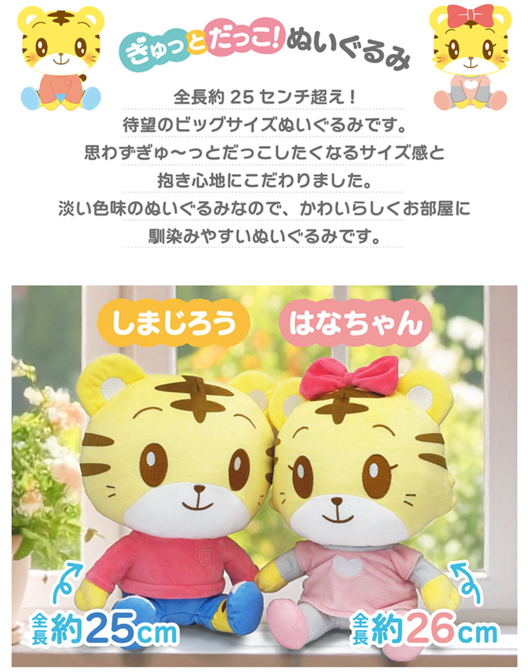 全長約25cm超え!待望のビッグサイズなしまじろうとはなちゃんのぬいぐるみです。
