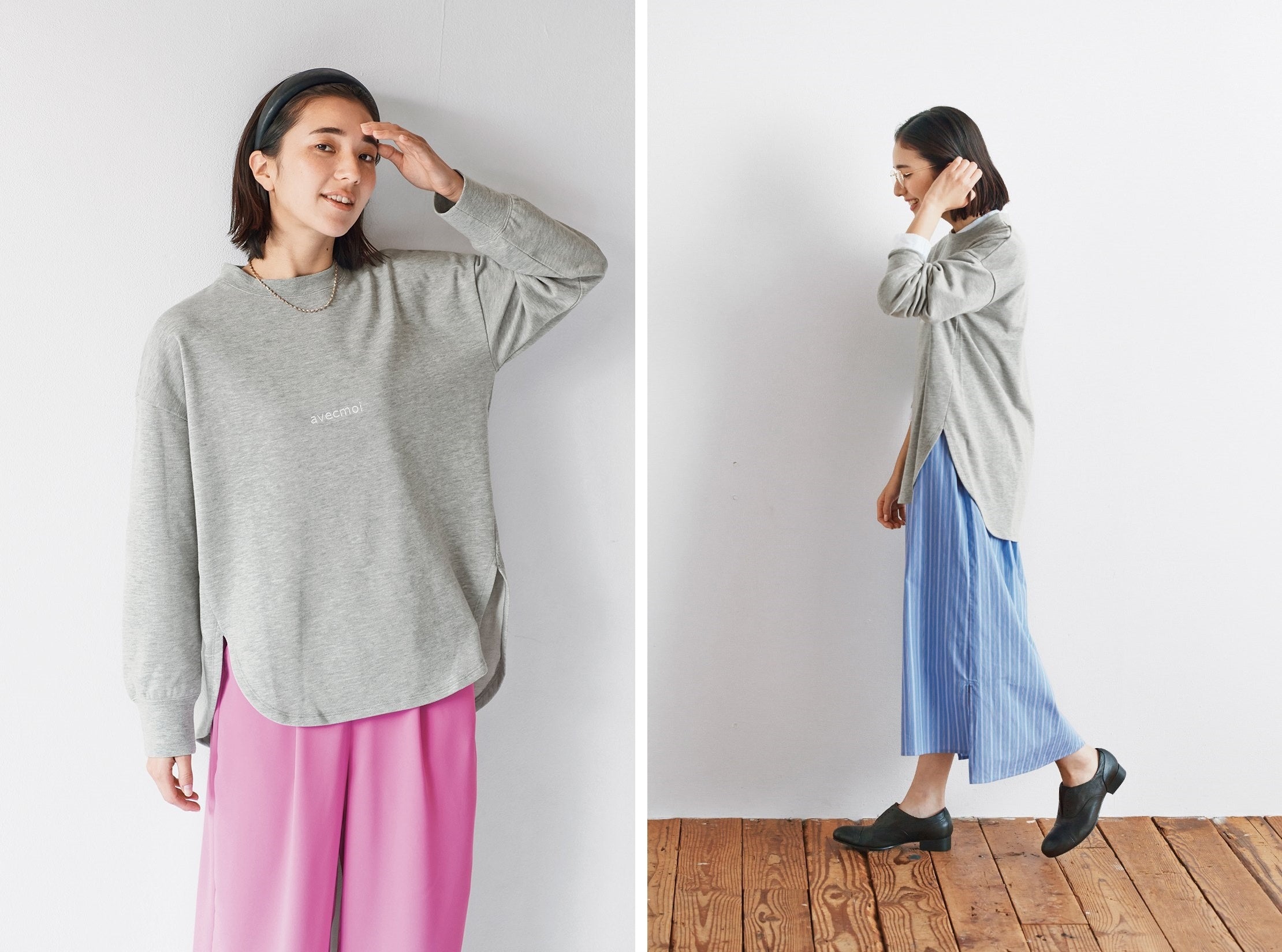 スタイリスト・佐藤かながプロデュースする「avecmoi[アヴェクモワ](=私と一緒に)」は、服と多くの時間を過ごしてきた彼女が“今、本当に着たい服”をコンセプトに服づくりをしています。こだわりは、シンプルさと着心地のよさ。キーアイテムとして着回しのしやすさに加え、着映えすること。さらに、大人の女性が好きな服を自分らしく着るために、「もう少しココがこうだったらいいのに」という、佐藤かなと同世代の女性の声が、シルエットや丈感に反映されています。程よく肩の力が抜けているけど、絶妙に今らしく、おしゃれに見える。そんな“おしゃれ上級者”のスタイルが叶うavecmoiの服を、まずは1枚ワードローブへ加えてください。