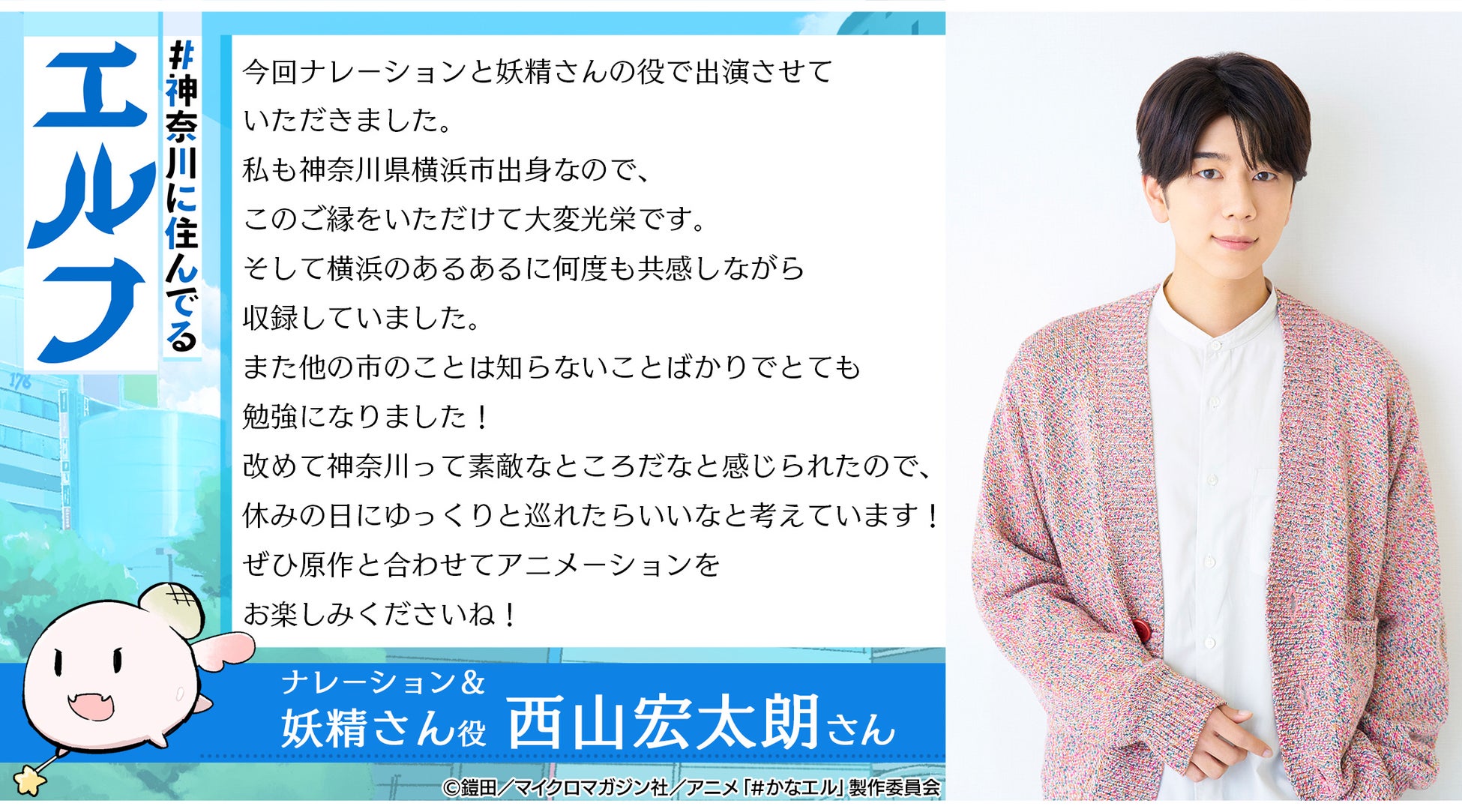 ナレーション&妖精さん役は横浜市出身の西山宏太朗さん、横須賀のエルフ役は相模原市出身の永野由祐さん、相模原のエルフ役は茅ケ崎市出身の井上雄貴さん、町田のオーク役は川崎市出身の藤井剛さんに決定!