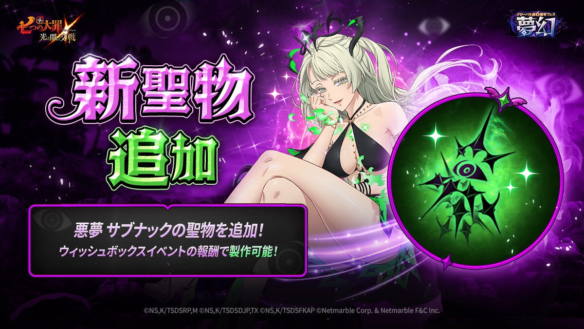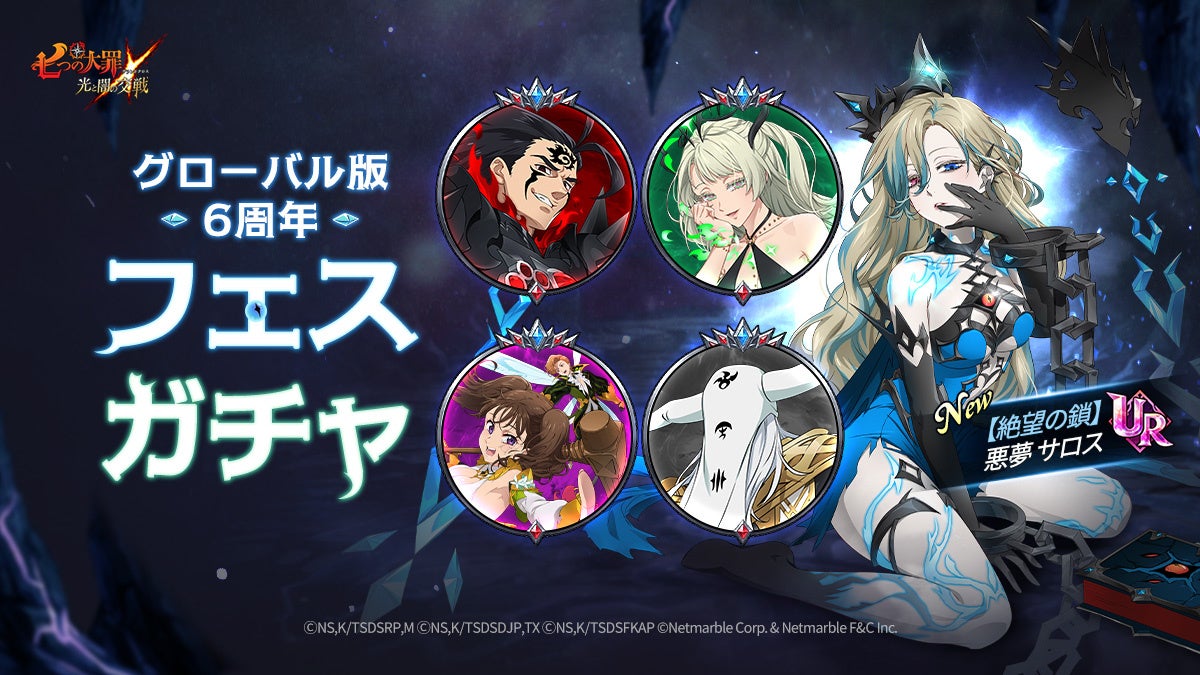 『七つの大罪 ~光と闇の交戦~』グローバル版6周年フェス~夢幻~開催!新キャラUR【絶望の鎖】悪夢 サロスが登場!