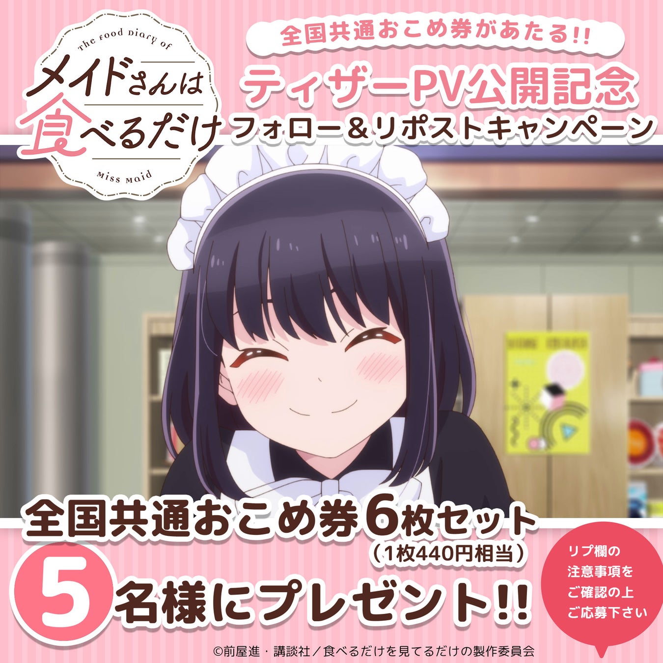 そして、ティザーPV公開を記念して、”食べるだけ”にかけて、「全国共通おこめ券」をプレゼント!フォロー&リポストキャンペーンを実施!!