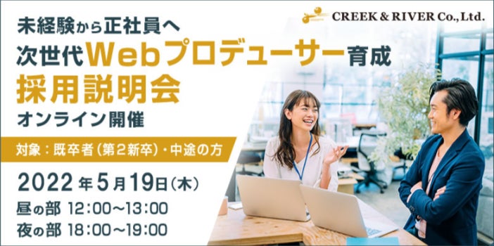 クリーク・アンド・リバー社(C&R社)は5月19日(木)、Webプロデューサーをめざす既卒(第二新卒)や中途の方々を対象に、「次世代Webプロデューサー人材育成プロジェクト」の採用説明会を開催いたします。