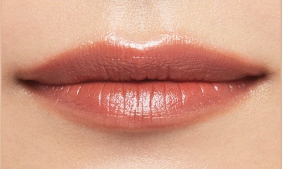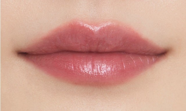 上唇の中央を1~2ミリオーバーに描いて上唇の山にボリュームを出します。山と谷の角度をなだらかに描くのがポイントです。グロスを唇中央に重ねてなじませることで、つやを出し、立体感のある仕上がりとなります。