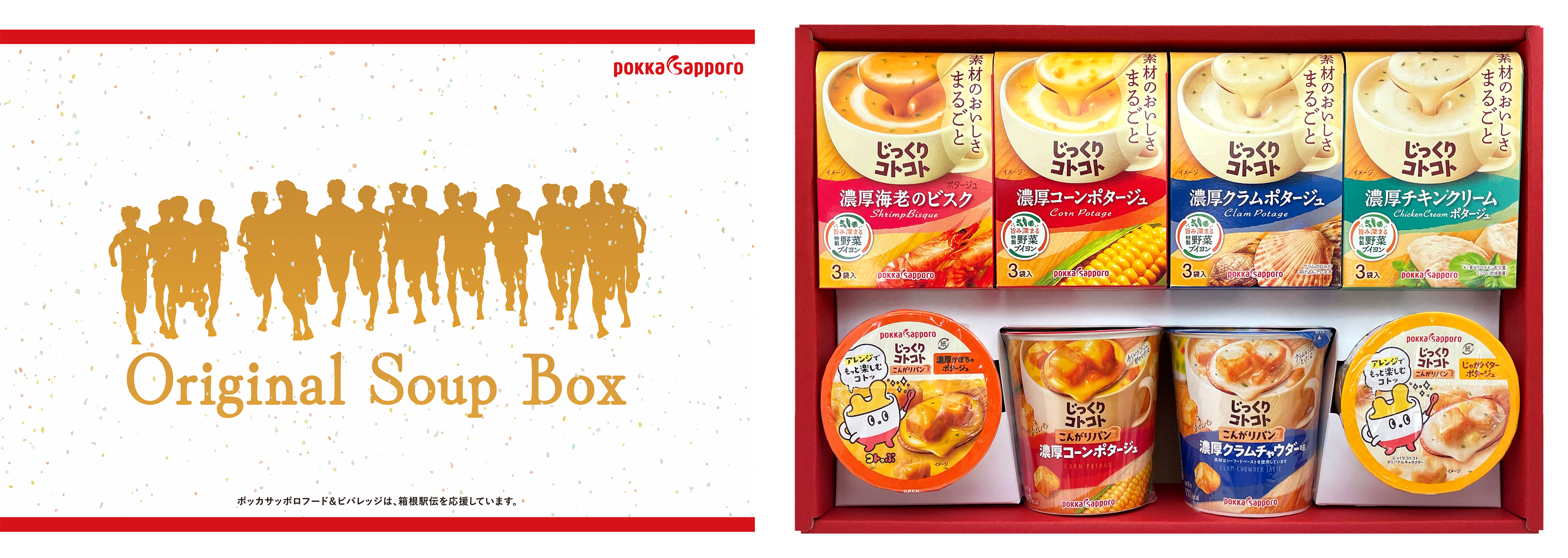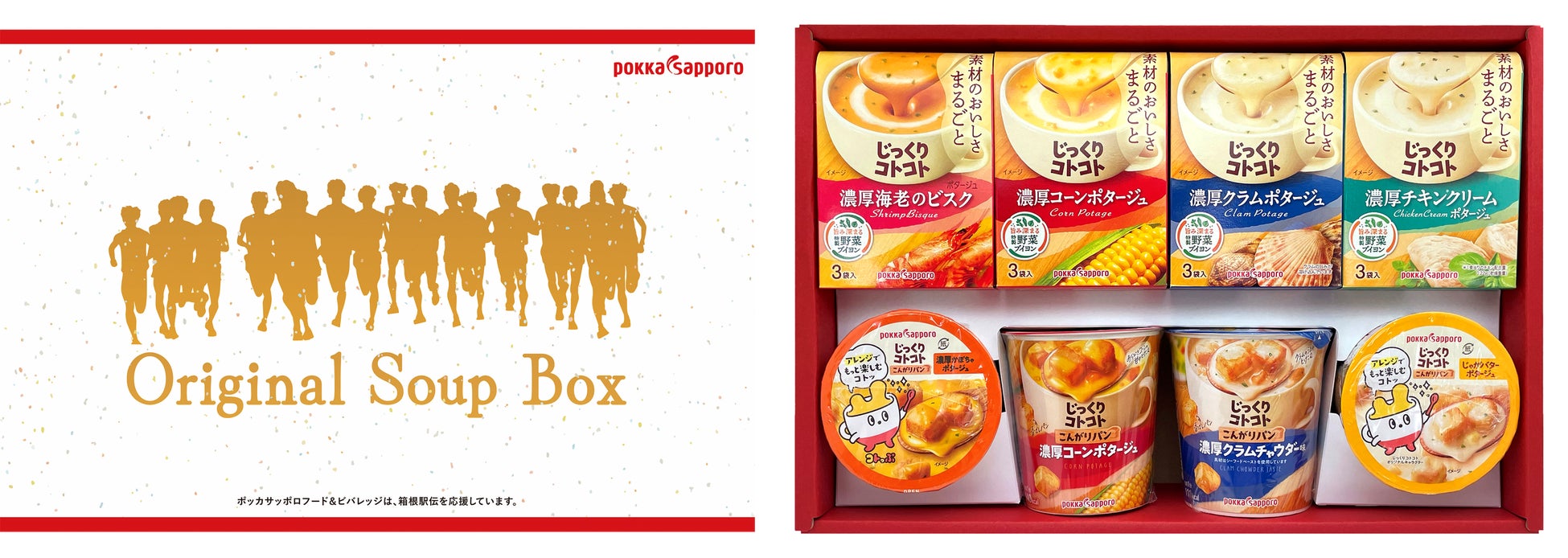 この度、ポッカサッポロ商品330円(税込)以上を含むレシートでWEB応募すると、箱根駅伝オフィシャルグッズ(ミズノ社製)やオリジナルスープBOXセット(ポッカサッポロ社製)が当たるキャンペーンを実施します。