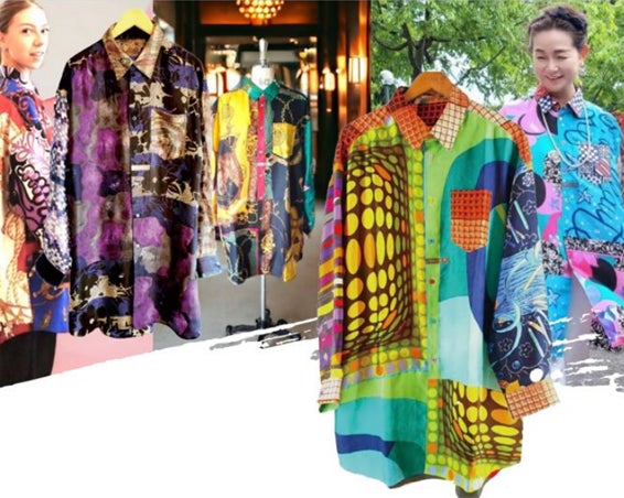 時を経て深みや味わいが増した、色とりどりのビンテージスカーフを贅沢に組み合わせ、日本の職人技で丁寧に命を吹き込み新たな「身に纏うアート/クロージングアート」を創り上げました。