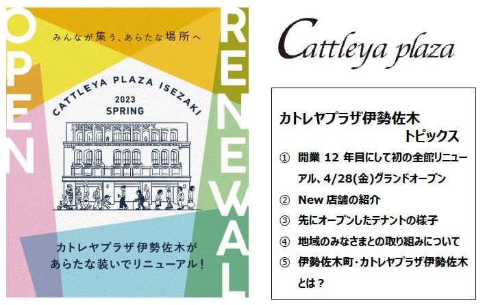 株式会社パルコ(本部:東京都渋谷区)が運営する横浜市中区伊勢佐木町の「カトレヤプラザ伊勢佐木」は2023年4月28日(金)に残る最後のテナント「ユニクロ」のオープンに伴い、3月1日以降順次オープンしてきた改装リニューアルがいよいよグランドオープンを迎えます。