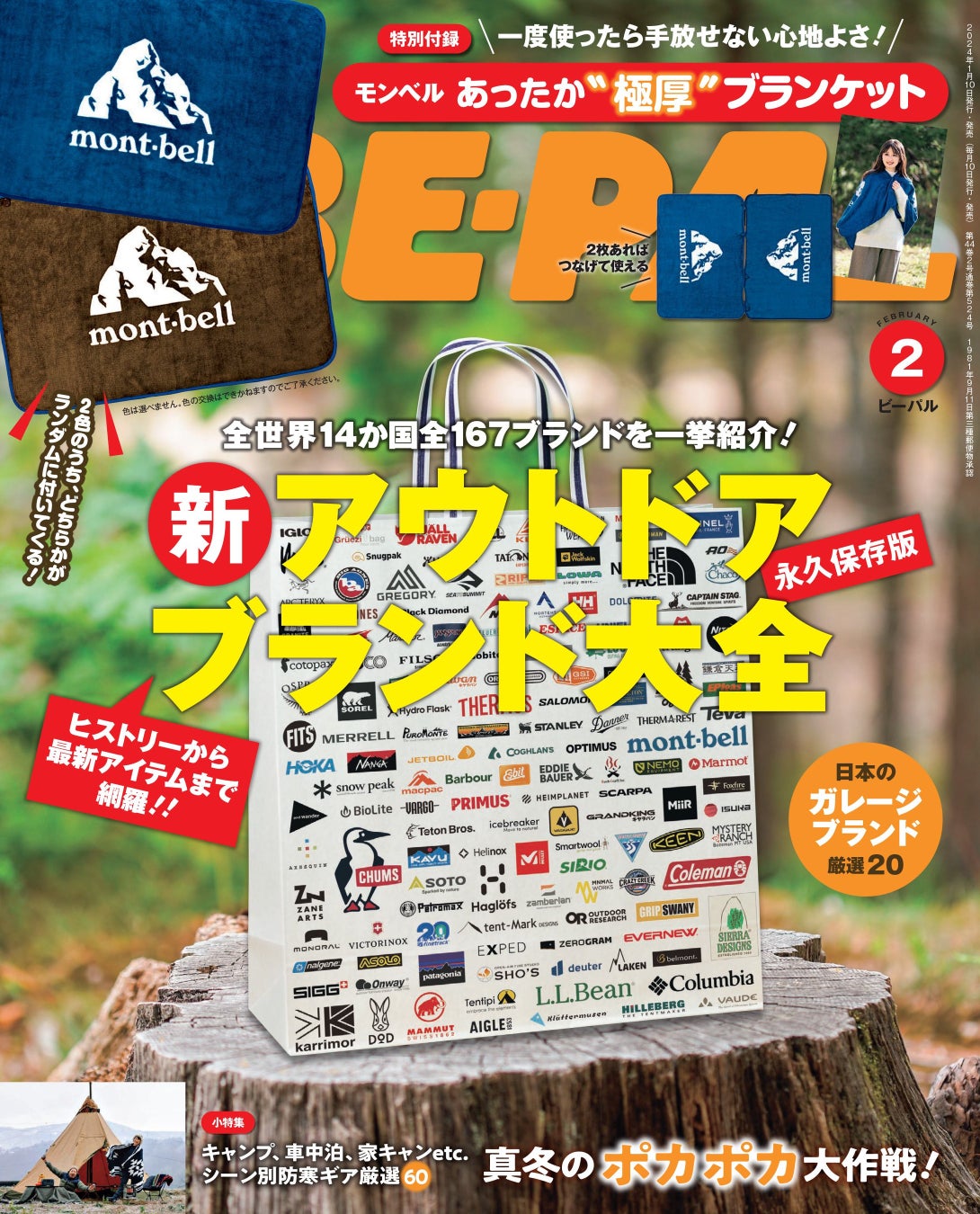 1月9日発売、BE-PAL2月号の特別付録は、キャンプはもちろん日常生活でも活躍するmont-bell × BE-PAL『あったか “極厚” ブランケット』。モンベルカラーでもあるブルーとブラウンの2種類で、2色のうちどちらか1色がランダムに入っています。
