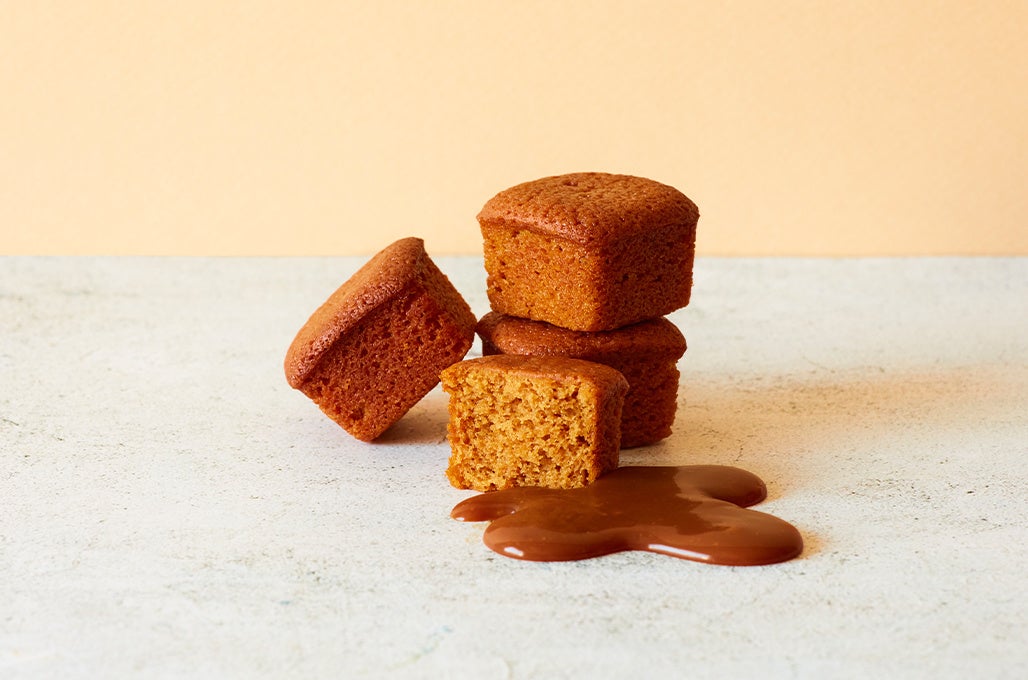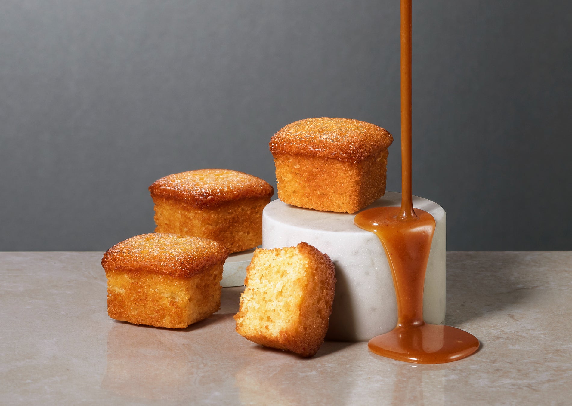 ほんのり香ばしいキャラメルフィナンシェ。コンデンスミルクとグラスフェッドバターを一緒に焦がし、キャラメルも加えて丁寧に混ぜあわせて焼き上げました。