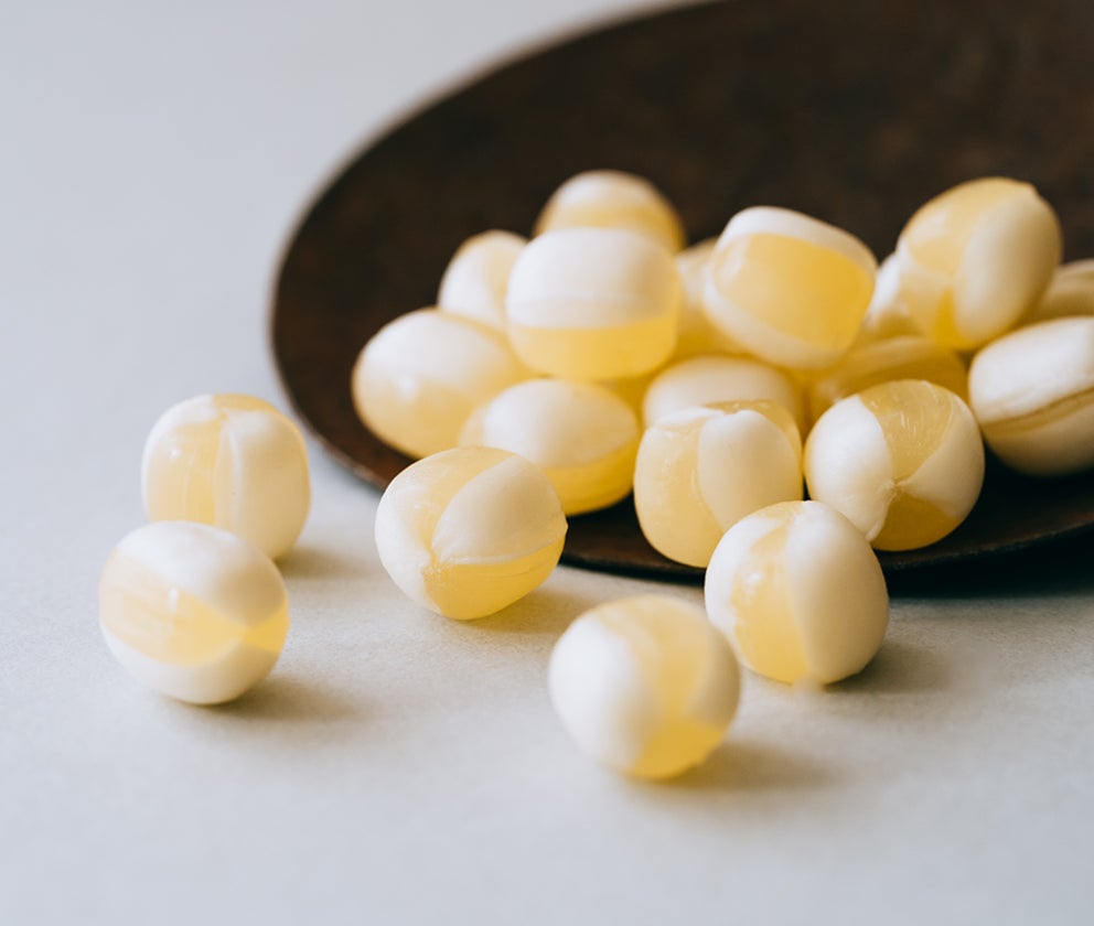 ジャージー牛の産地である岡山県蒜山のジャージーバターを使い、京都・宇治にある岩井製菓の熟練した職人達が昔ながらの地釜で少量ずつ時間をかけ、直火で丹念に煮詰め、ひと粒ひと粒丁寧に手をかけて作りました。