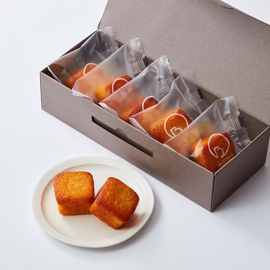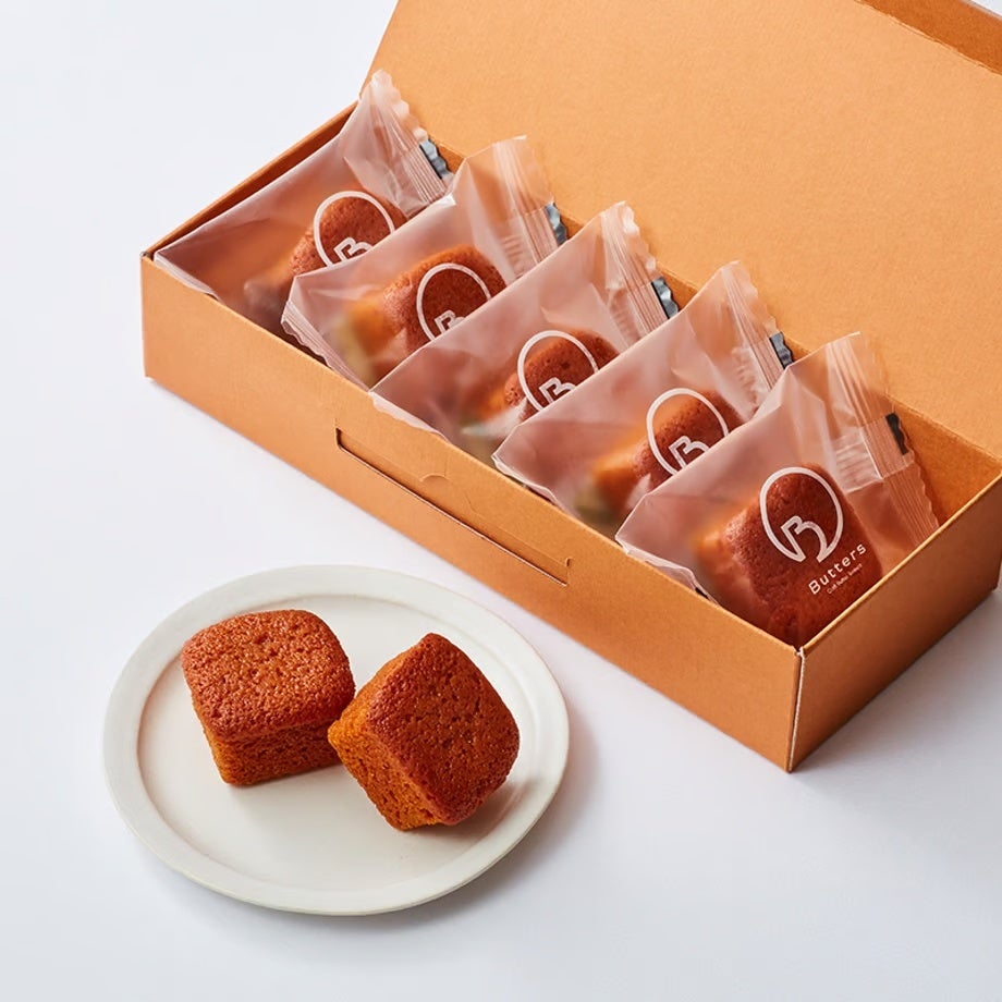 カカオとバターが出会うことでお互いの個性を引き立たせ、バターの風味はより強く、ミルクジャムとフィナンシェ生地のコントラストが強調された味に仕上がりました。バターの濃厚さとカカオのほろ苦さが上品なバターケーキをご堪能ください。