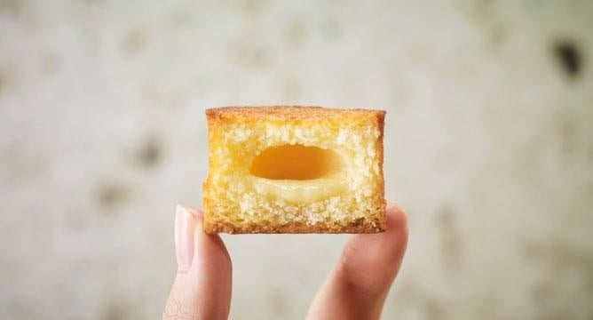 ニュージーランドで放牧され牧草を食べて育った生乳から作る「グラスフェッドバター」を使い、食感の異なる2つの生地ガレット・ブルトンヌとフィナンシェにミルクジャムを挟み三層仕立てで焼き上げました。