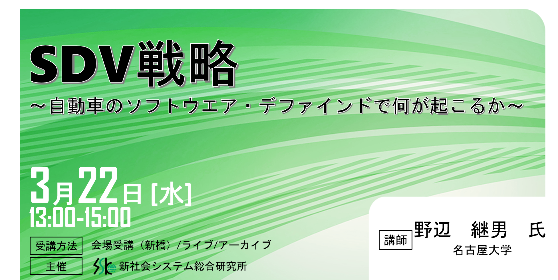 「SDV戦略」と題して、名古屋大学 未来社会創造機構 客員教授 野辺 継男氏によるセミナーを2023年3月22日(水)に開催!!