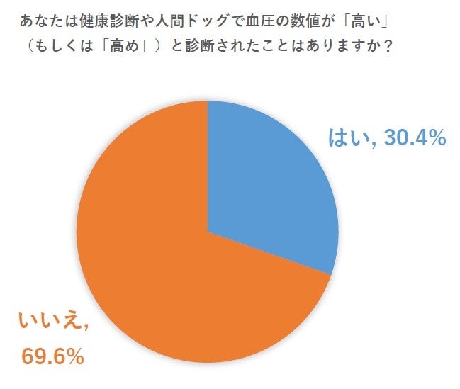 高血圧は30.4%、コレステロールは41%の人が「健康診断や人間ドッグで数値が「高い」(もしくは「高め」)と診断されたことがある」と回答。どちらの項目も 約3人に1人が指摘されているという結果となりました。