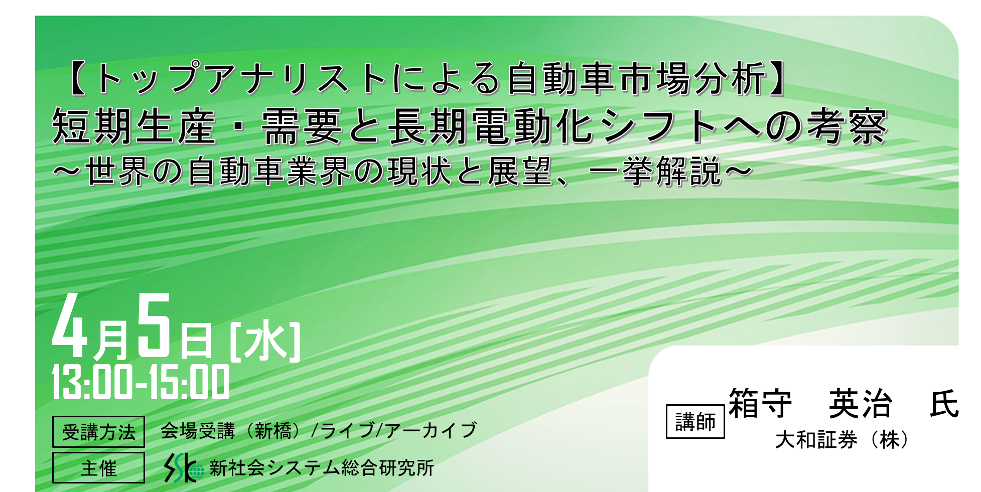 「短期生産・需要と長期電動化シフトへの考察」と題して、大和証券株式会社 エクイティ調査部 チーフアナリスト 箱守 英治氏によるセミナーを2023年4月5日(水)に開催!!