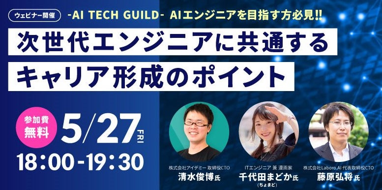 AIエンジニアに役立つ情報をお届け!「AI TECH GUILD」がスタート!! 5/27(金)無料セミナー「次世代エンジニアに必要なキャリア形成のポイント」