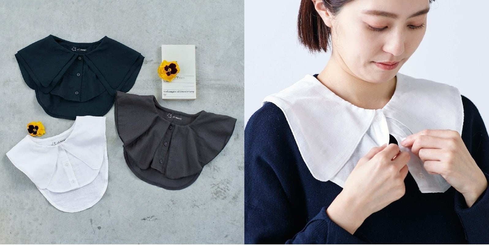 【NEW】el:ment 手持ちの服を愛せる コットン100%ダブルガーゼの付け衿の会
