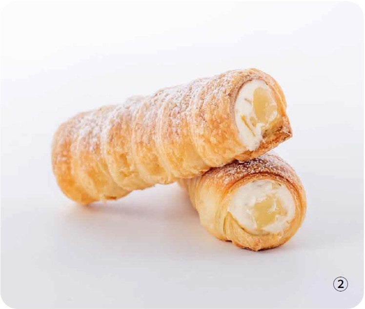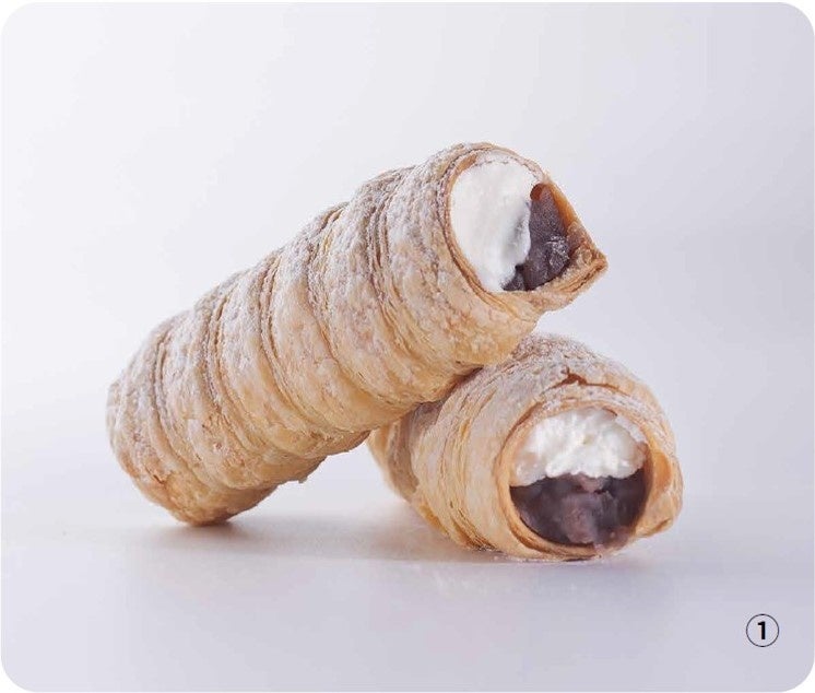 香ばしいパイ生地のコルネに、北海道産小豆の粒餡と、やさしい甘みの和三盆クリームをたっぷり詰めました。爽やかな味わいのレモンコルネもおすすめ。