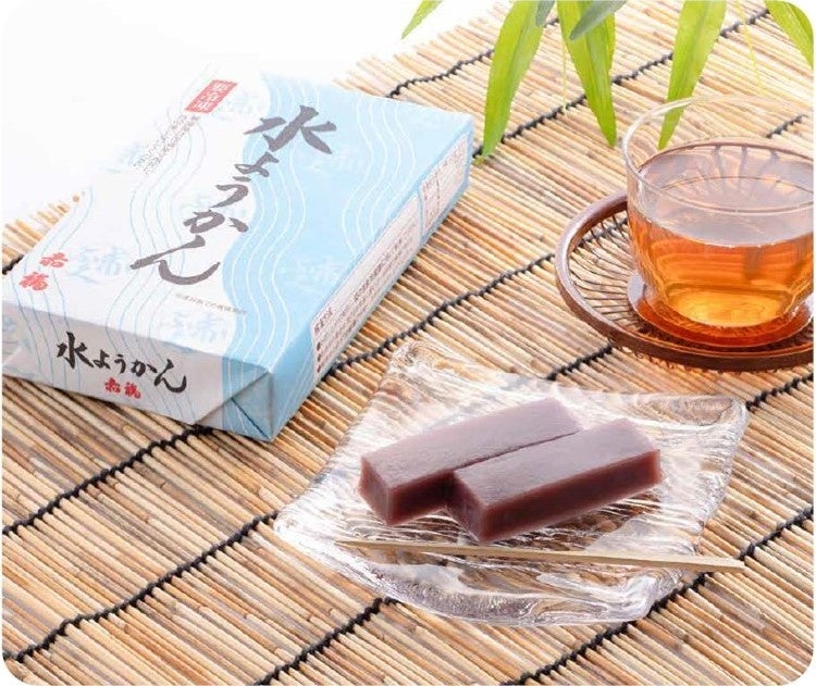 北海道産小豆のこし餡を、すっきりとした甘さのみずみずしい水ようかんに仕立てました。折箱に流し込んだ“一枚流し”が特徴。お好みの大きさに切ってどうぞ。