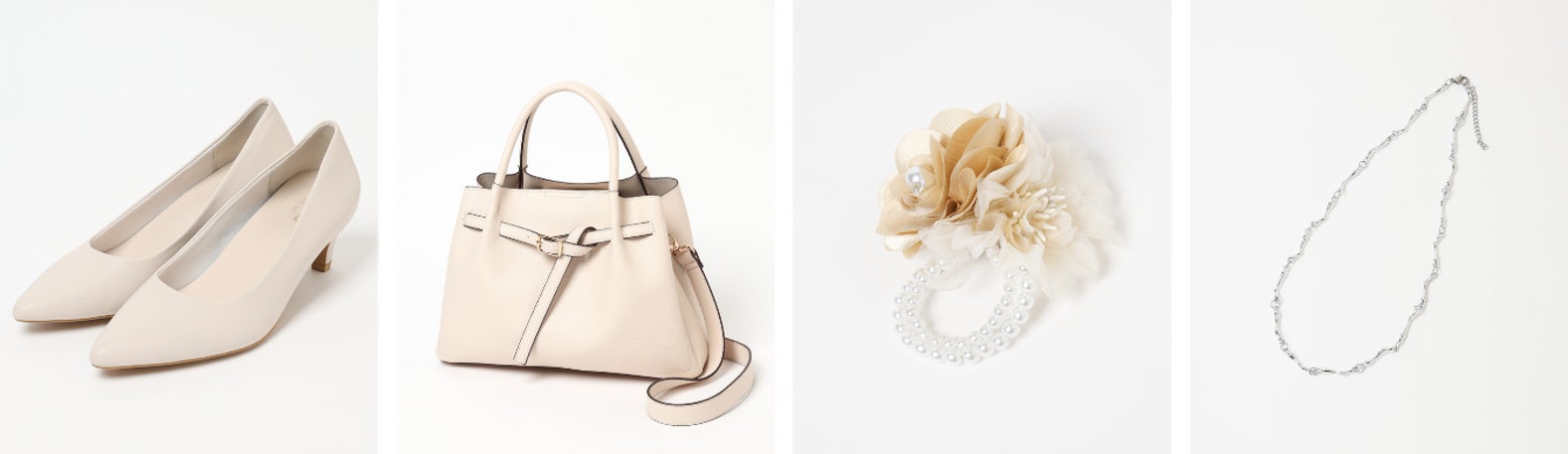 同時発売のセレモニー小物も豊富なラインアップで展開。アクセサリー、コサージュ、ブローチ、パンプス、バッグなど、どのアイテムもセレモニーシーンにふさわしい上品なデザインが魅力です。特にパンプスは、2024年11月にデビューした Eluraの新・機能性シューズ「Sapofeet(サポフィート)」シリーズから登場。インソールメーカー株式会社BMZとコラボレーションし開発されたこのシューズは、履き心地の良さはもちろん美しい姿勢をサポートなど、普段パンプスやヒールを履く機会が少ない方もストレスが少なく、安心して着用いただける商品です。