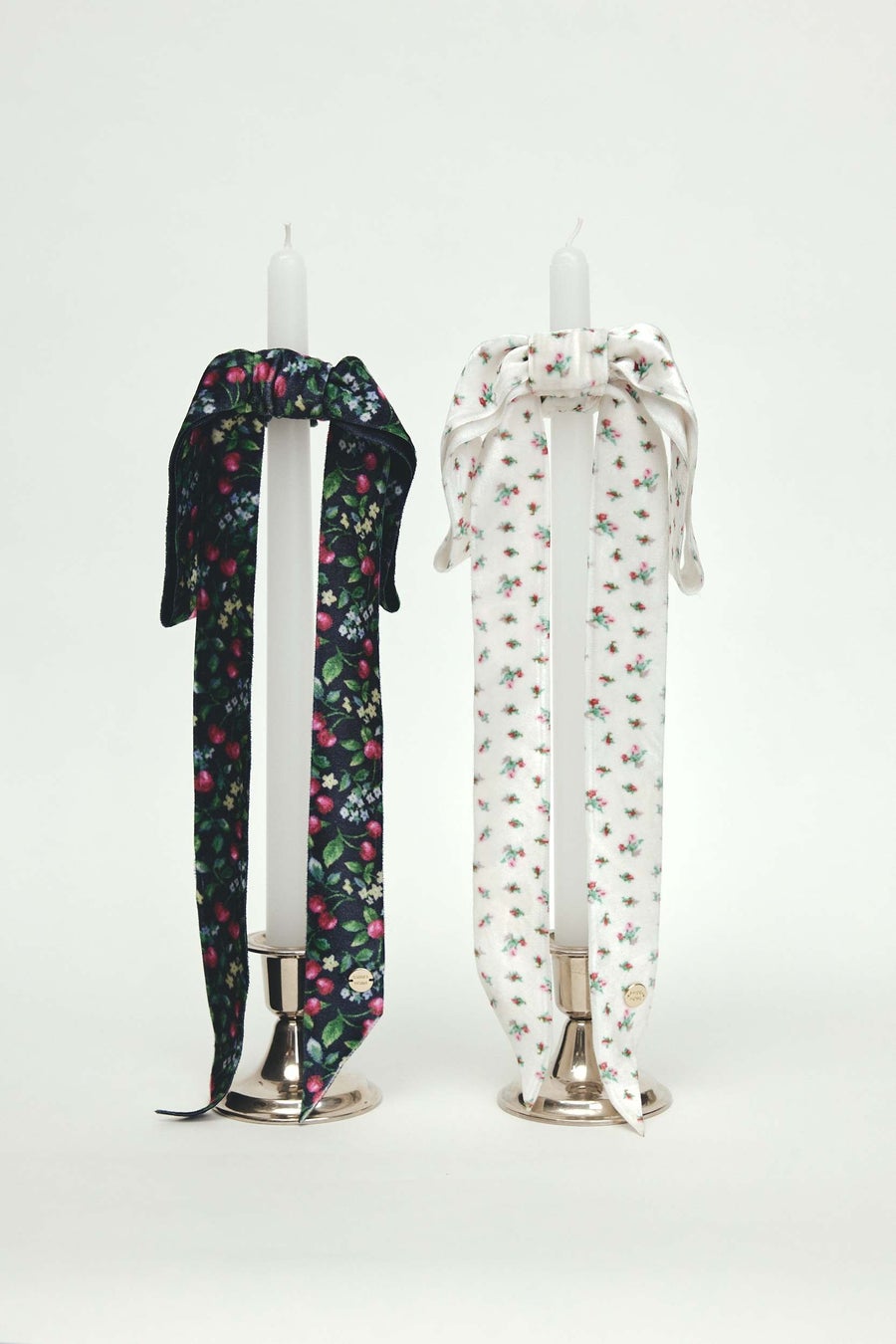 しなやかなベロア生地にプリントしたリボンシュシュ。