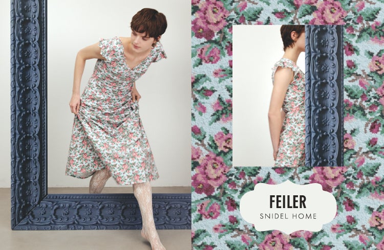 フェイラーで人気のモチーフ『リアローズ』を始め、ひと柄ひと柄に薫り高い文化やストーリーが織り込まれたパターンに、SNIDEL HOMEらしいファッショナブルなデザインを融合させ、仕立て上げました。