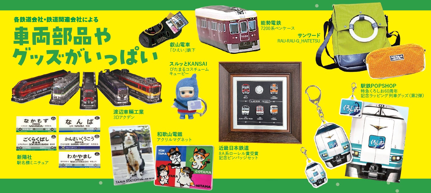 また、スルッとKANSAI、和歌山電鐵、能勢電鉄、叡山電車、京都丹後鉄道、奈良交通など関西圏の鉄道・バス関連会社や大井川鉄道、いすみ鉄道、くま川鉄道など関西以外のエリアからも鉄道会社が出展します。