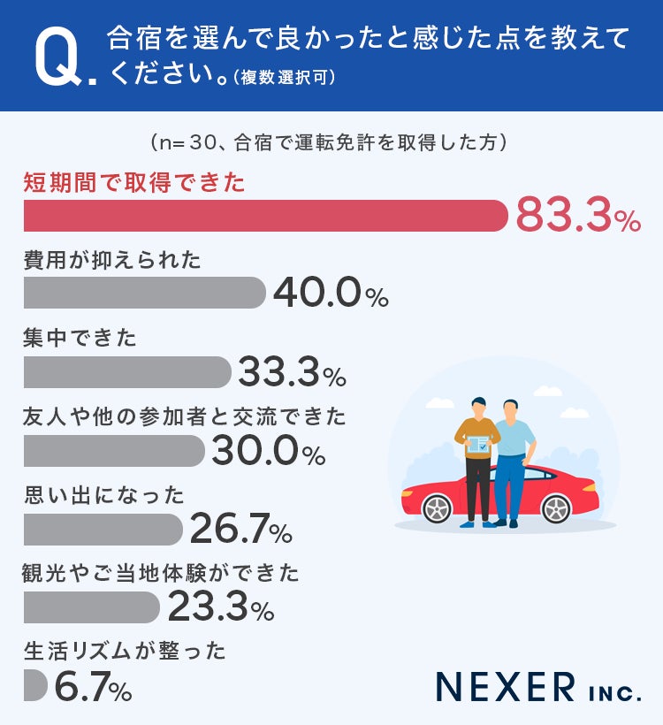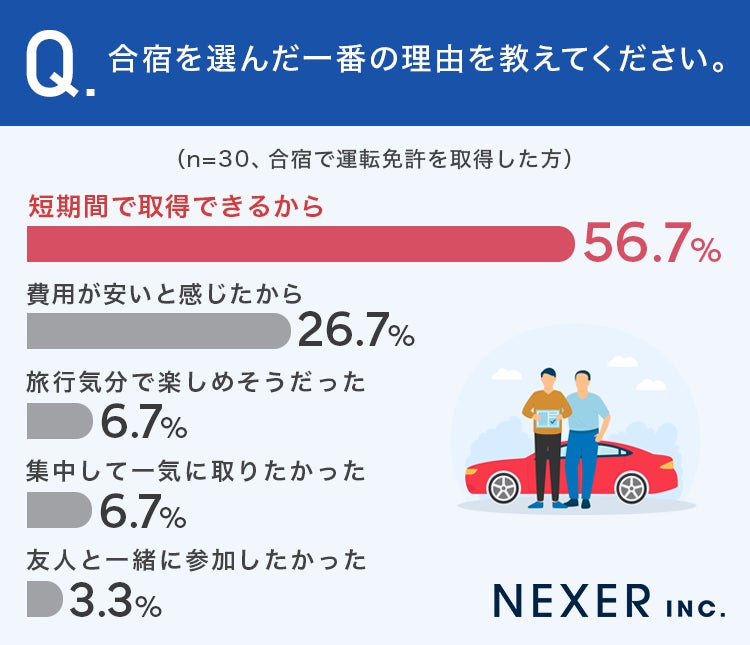 株式会社NEXER・通学/合宿を選んだ理由と満足度に関する調査