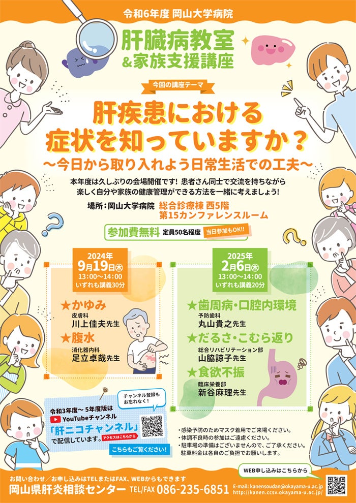 【岡山大学】岡山大学病院「肝臓病教室&家族支援講座(令和6年度第1回)」〔9/19,木 岡山大学病院〕
