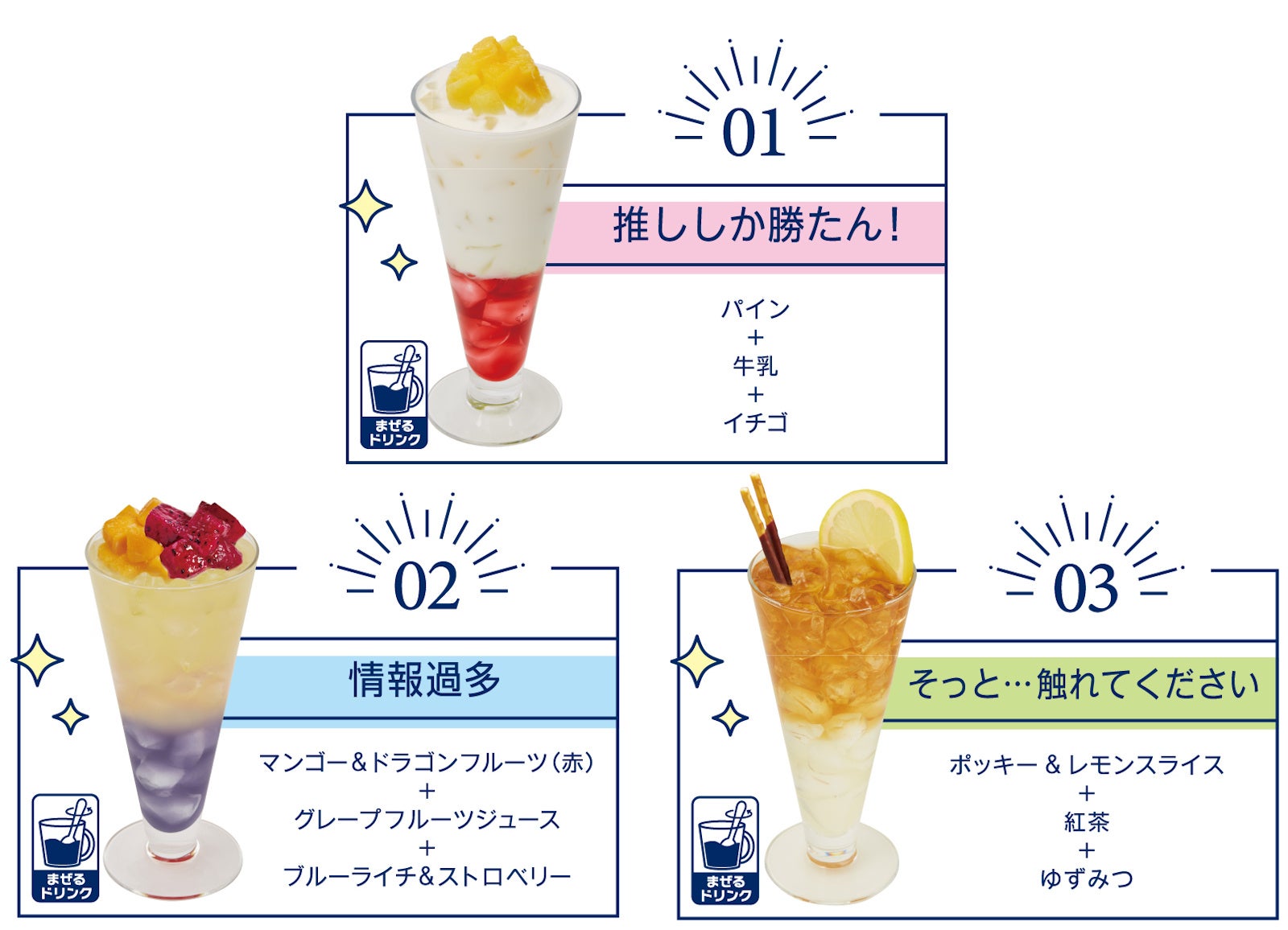 「宮野真守のRADIO SMILE」の番組にまつわる「推ししか勝たん!」「情報過多」「そっと…触れてください」の3種[各750円(税込)ノンアルコール]をご用意します。