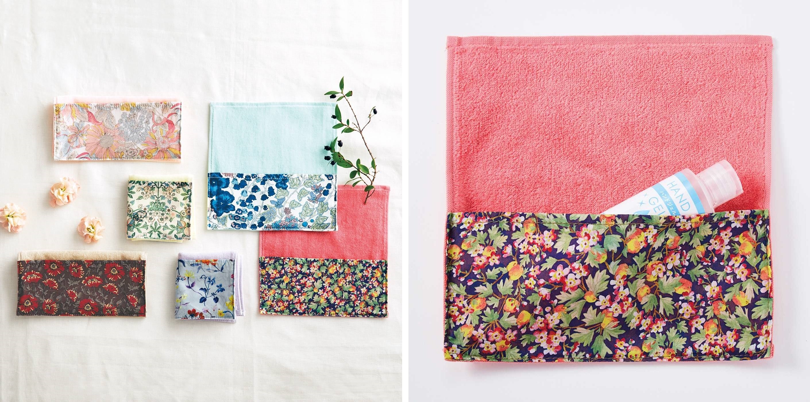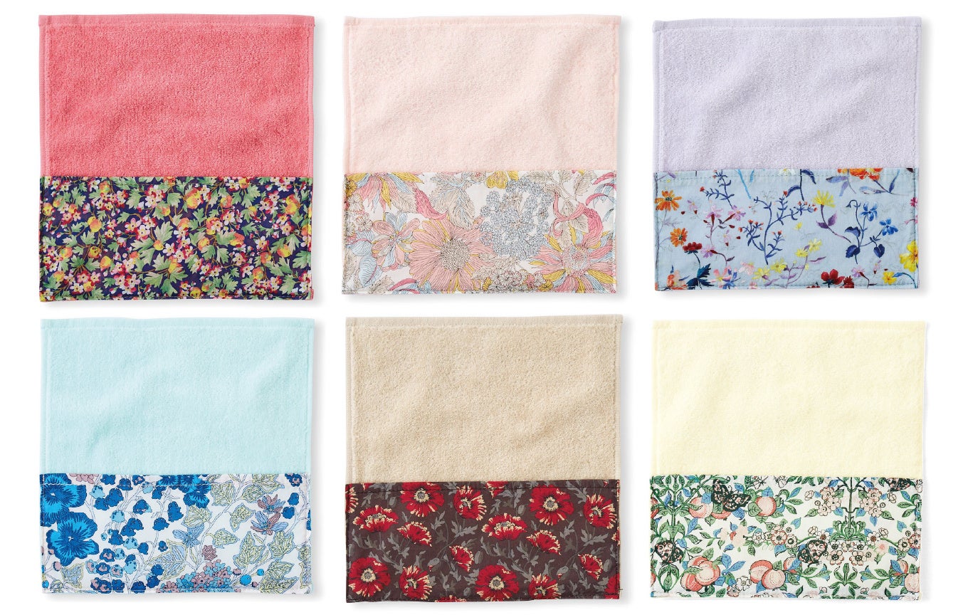 愛媛県今治産のやわらかなパイル生地がシャーリング加工された、ベルベット調の滑らかな肌ざわりが心地よいミニハンドタオルです。たたんでポケットに入れてもかさばらないからふだん使いにも便利です。コスメなど、ちょっとした物を入れられるリバティプリントのポケット付きで吸水性も抜群です。