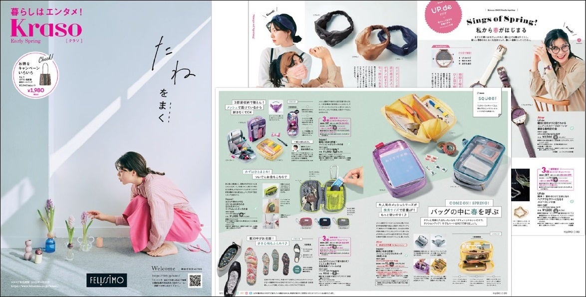 フェリシモが展開する「Kraso[クラソ]」は新作雑貨を発表、2月5日よりウェブ販売を行っています。ブランド「UP.de[アプデ]」からは、曜日と日付もひと目で確認できる時計やマスクをかけられる機能性抜群なターバン、ブランド「Squee![スクイー!]」からは、じゃばらに開いて収納しやすいシースルーのメッシュ製マルチポーチなど、気分が上がる春の小物たちが登場しています。新作は公式サイトのほか、デジタルカタログでもチェックできます。