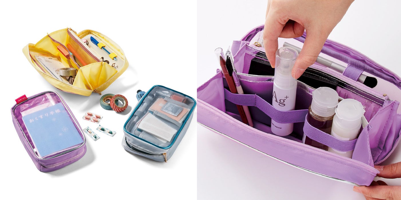 中身を瞬時に把握!定番メッシュポーチが横長サイズで容量UP