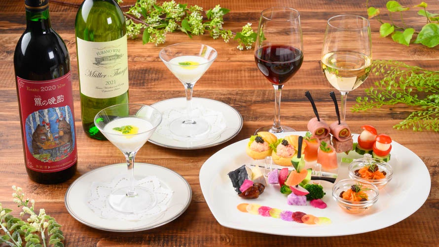 ●シニアソムリエが厳選した富良野産ワインと料理長監修による「ふらのチーズ」や道産食材のオードブルをご用意