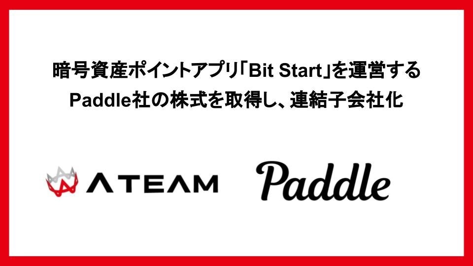 エイチーム、暗号資産ポイントアプリ「Bit Start」を運営するPaddle社の株式を取得し、連結子会社化